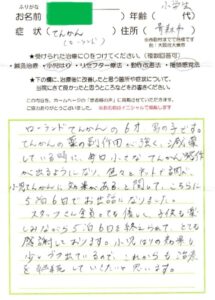主訴:ローランドてんかん 年齢:6歳/男の子 住所:青森県 施術内容:鍼...