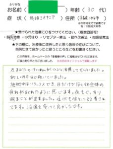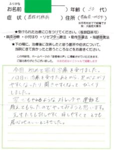 主訴:高次脳機能障害 年齢:34歳/男性 住所:大阪府羽曳野市 施術内容...