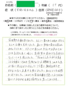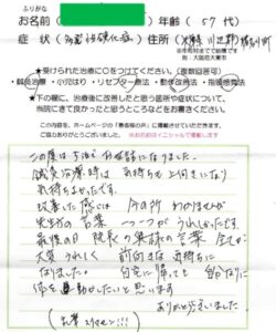 主訴:多発性硬化症 年齢:50代/女性 住所:兵庫県川辺郡猪名川町 施術...