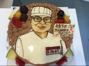 故会長の似顔絵ケーキです。