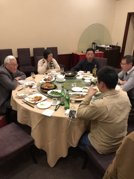 一緒にご挨拶へ行った時の写真です。趙偉康先生、張碧英先生、鉏桂祥先生との会食