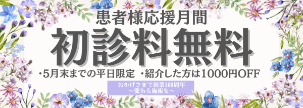 5月の応援特典は鍼灸治療の「初診料無料」です。
