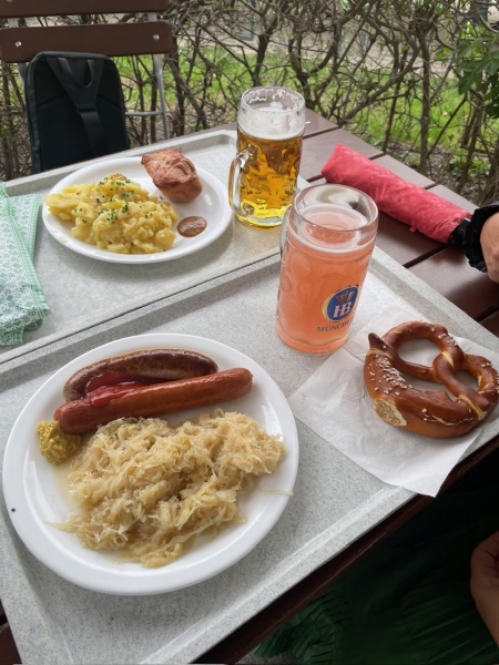 広い公園を散歩した後、ちょうどお昼の時間でしたので、ビールとソーセージをいただきました。