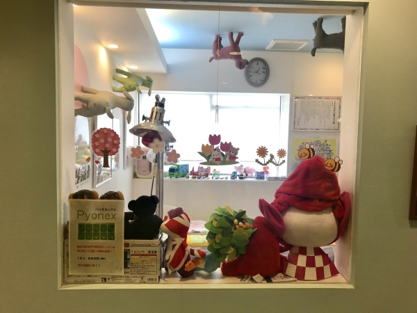 ちなみに、写真の2枚目の「小児治療室」のハチさんと赤いお花の組み合わせは、