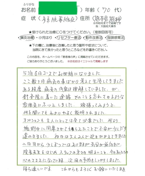 【多系統萎縮症(MSA)】70代/男性 熊本県