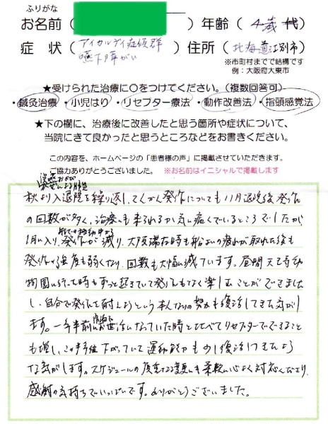 自分で発作を耐えようという本人なりの努力も復活してきた気がします。