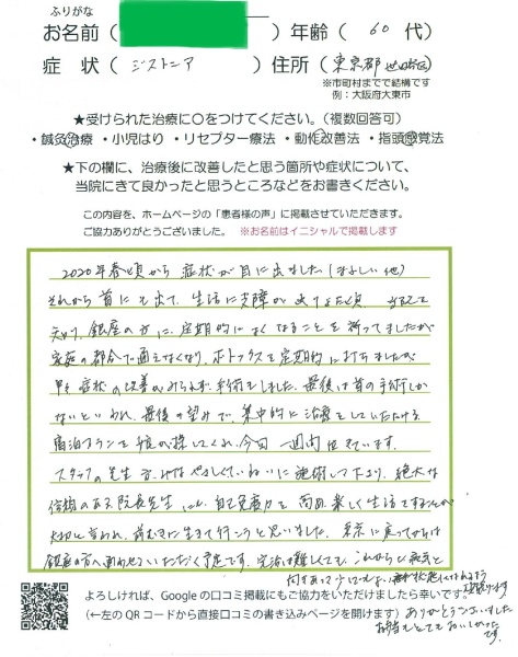 東京に戻ってからは銀座(針灸院)の方へ通わせていただく予定です。
