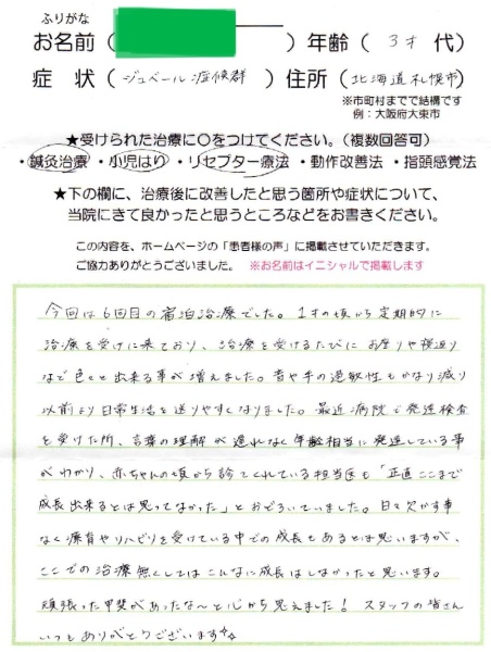 ここでの治療なくしてはこんなに成長はしなかったと思います。