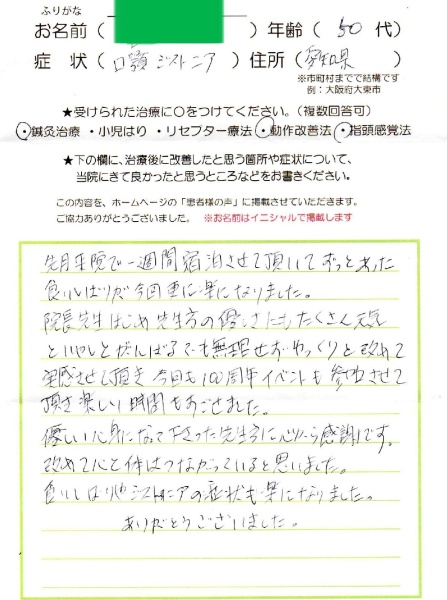 施術内容:鍼灸治療、動作改善法、指頭感覚法