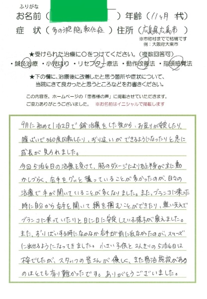 【多嚢胞性脳軟化症】11か月/男の子 広島市