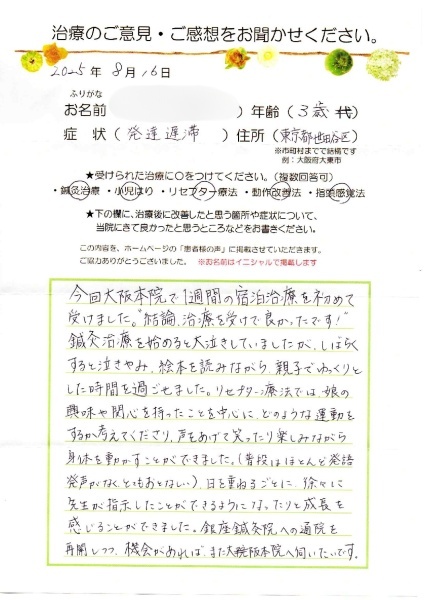 【発達遅滞】3歳/女の子 東京都