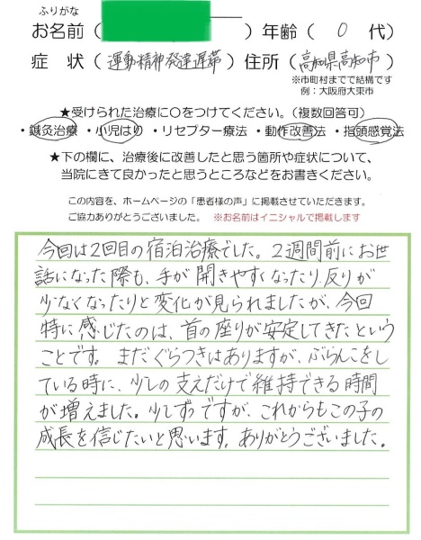 【運動精神発達遅滞】0歳/男の子 高知県