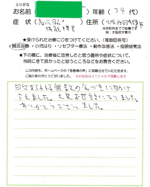 【高次脳機能障害】30代/男性 大阪府羽曳野市