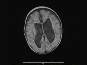 ▲中央の黒い部分(脳室)の拡大と周囲にある白質の軟化