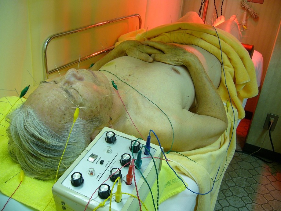 その模式図に基づいて必要な頭皮エリアに鍼を打ち、その鍼を通じて0.7ミリアンペアの微弱電流を流します。人体にはもともと微弱電流が流れていますが、こうして鍼を通じた微弱電流を流すことで確率共振反応による微弱なノイズ入力信号が伝わり、脳神経を活性化させ、ネットワークが繋がることでダメージを受けた部分の代償作用として、難病や発達障がいを克服する可能性があると考えました。